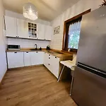Die 8-Zimmer- Domki Lawendowy Zakatek verfügt über Parkplätze und eine Terrasse mit Aussicht auf den Garten.